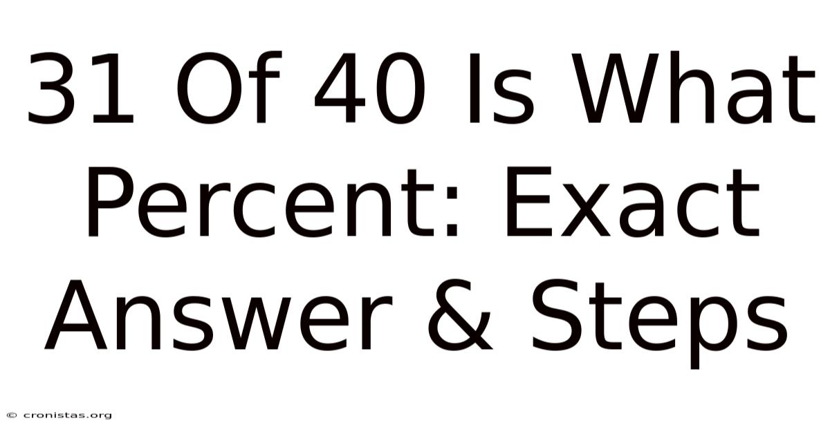 Ever looked at a test score or a performance metric and thought, “31 out of 40 is what percent?Because of that, ” You’re not alone. It’s a simple question, but for some reason, it trips people up. Practically speaking, maybe you’re a student trying to figure out your grade, a parent helping a kid with homework, or just someone who’s curious about how percentages work. Either way, this isn’t a complicated math problem, but it’s easy to mess up if you don’t break it down Easy to understand, harder to ignore..
