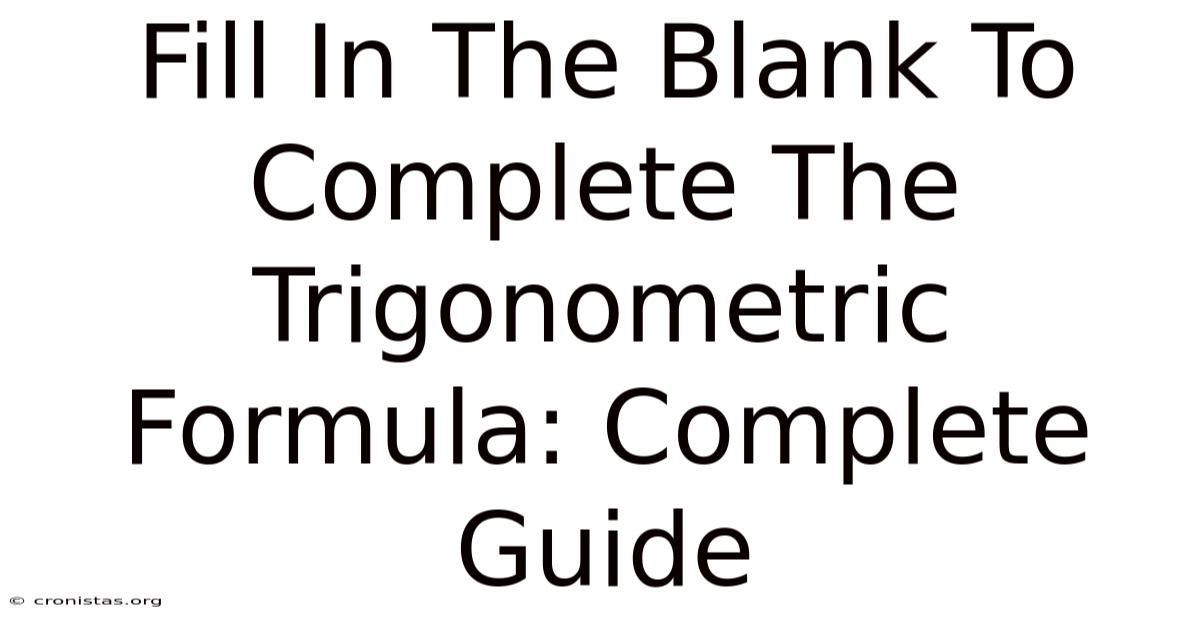 When teachers or textbooks ask you to “fill in the blank to complete the trigonometric formula,” they’re testing your grasp of a fundamental identity or relationship. Here's the thing — think of the Pythagorean identity, the double‑angle formulas, or the co‑function identities. Each of these has a standard form, and the blank is simply a missing term that you need to supply.