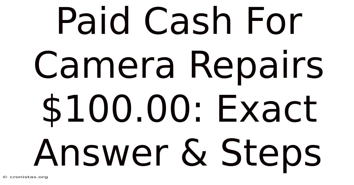 When you're dealing with camera repairs, you might wonder how much you really need to spend. Let’s talk about the idea of paid cash for camera repairs—specifically, what that means, why it matters, and whether it’s worth the $100 you’re considering And that's really what it comes down to..