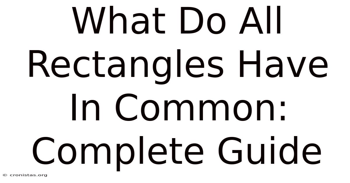 What do all rectangles have in common? Think about it: they're everywhere. Practically speaking, it's one of those questions that sounds simple but actually reveals something elegant about geometry. Most people can spot a rectangle instantly — doors, windows, phone screens, book pages. But if someone asked you to explain what makes a rectangle a rectangle — the actual geometric properties that every single rectangle shares — you might pause Surprisingly effective..